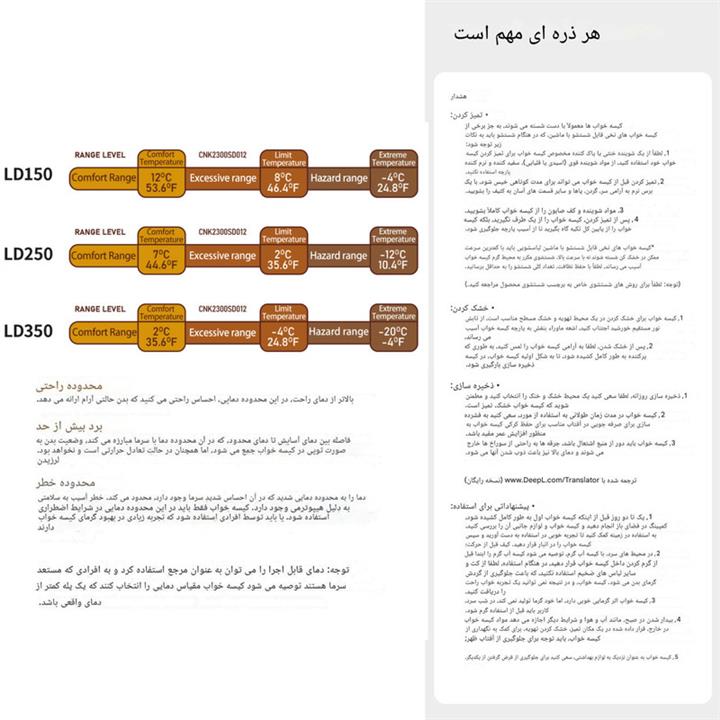 مشخصات فنی کیسه خواب نیچرهایک مدل CNK2300SD016-LD150