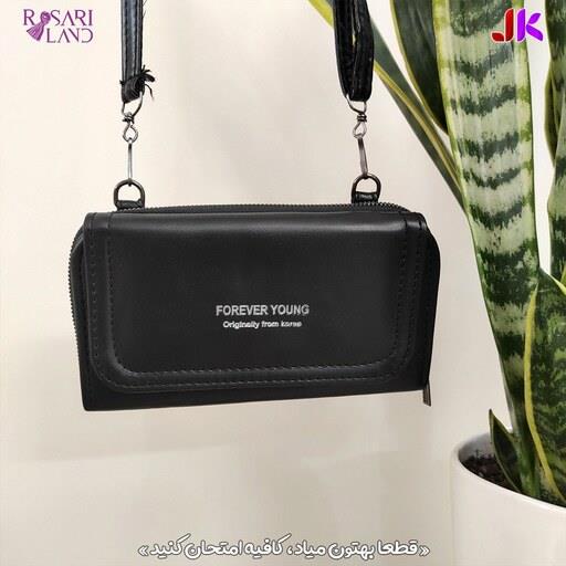 کیف زنانه مشکی پاسپورتی با جاکارتی و بند چرمی جذاب دوخت تمیز قیمت مناسب جامه کده