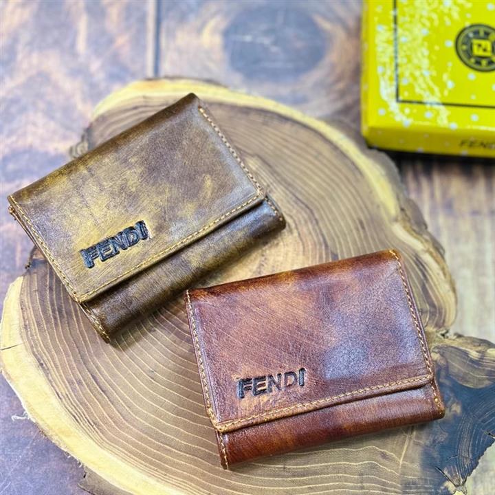 کیف پول دو برگ دست رنگ چرم طبیعی فندی با جعبه