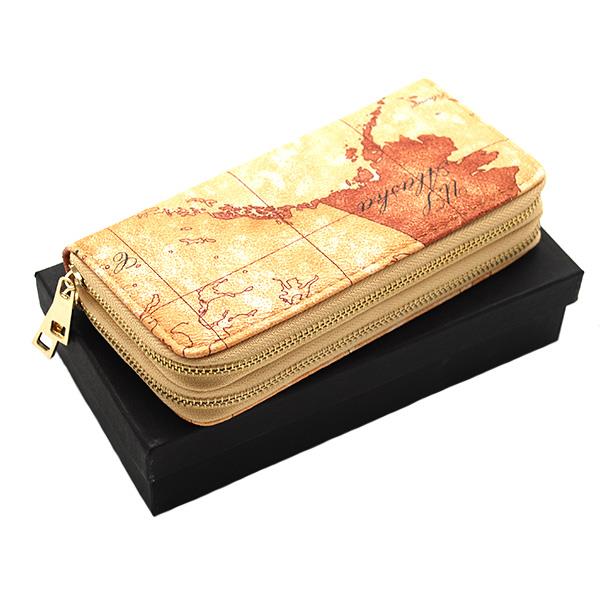 کیف پول دو زیپ طرح نقشه ال وی