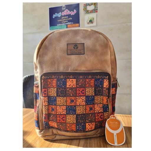 کیف کوله پشتی یوتاب. مدل سنتی. جنس بیرونی پارچه میکرو و داخل کیف چرم مصنوعی. طرح گلگلی
