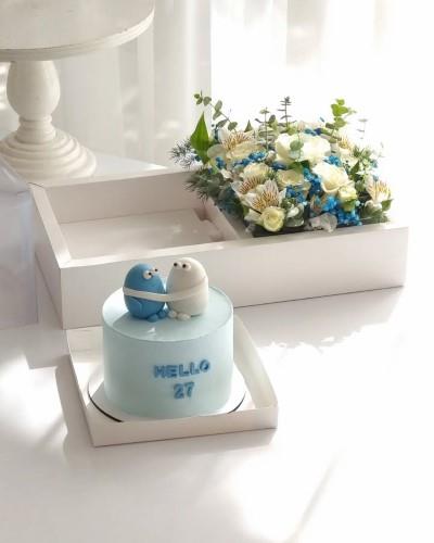 کیک تولد و باکس گل لاکچری صورتی