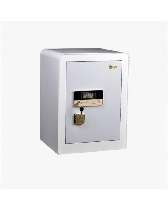 درب با ورقه فولادی اس تی 37، 10 میلیمتری و ضخامت کلی 8 سانتیمتری\r\nبدنه با ورقه فولادی اس تی 37، 4 میلیمتری و ضخامت کلی 4 سانتیمتری\r\nلولای مخفی ضد سرقت\r\nقابلیت برنامه ریزی رمز دیجیتال\r\nدارای صفحه نمایشگر دیجیتال رمز قفل\r\nدارای پشم سنگ (Rock wool) مقاوم تا 1300 درجه سانتیگراد بین لایه های فولادی بدنه و درب\r\nدارای 7 زبانه ضد سرقت در اطراف درب، دارای 4 زبانه جلو، 2 زبانه بالا و 1 زبانه پایین\r\nدارای تزیینات داخلی شامل تریم داخلی چرم و طبقه ام دی اف \r\nدارای دو محفظه داخلی با قفل مستقل\r\nقابلیت باز شدن درب ها با رمز دیجیتال و کلید زاپاس\r\nرنگ کوره ای الکترواستاتیک\r\nطراحی زیبا با گوشه های منحنی، وزن سبک تر و مقاومت بیشتر نسبت به گاوصندوق های بتنی \r\nدارای گارانتی 12 ماهه سدید و خدمات پس از فروش 60 ماهه\r\nچراغ اتوماتیک گاوصندوق در هنگام باز شدن درب فضای گاوصندوق را روشن می کند..
