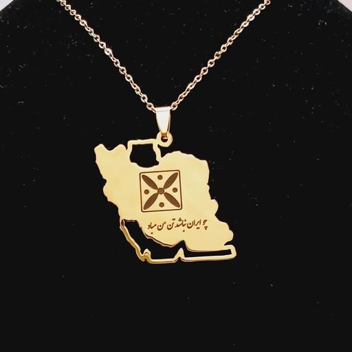 ایران گردنبند نقشه ایران استیل با زنجیر 60 سانتی با طرح درفش...