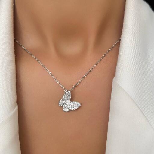 گردنبند زنانه پروانه نقره ای استیل کد153