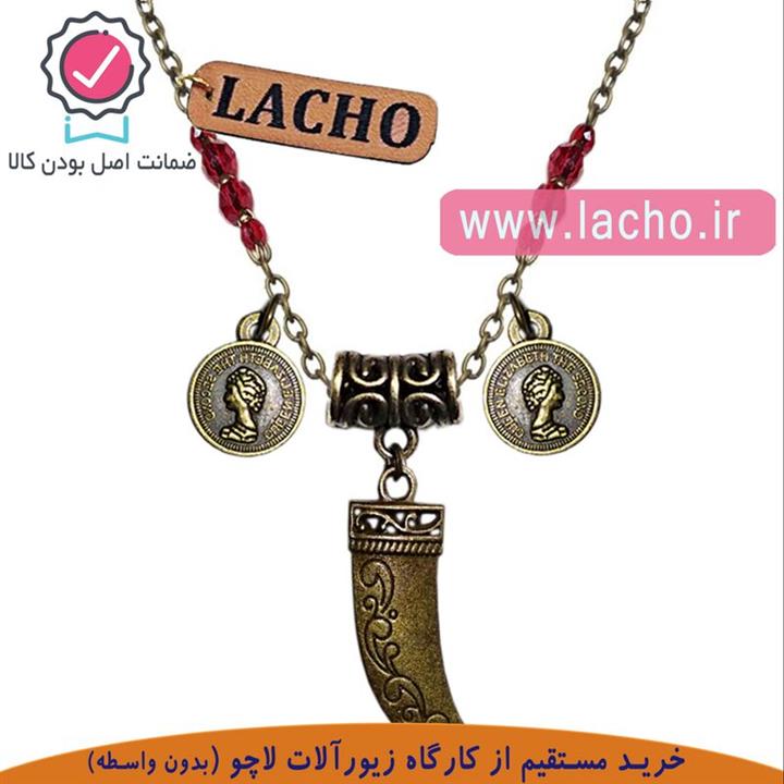 گردنبند دست ساز زنانه برند لاچو طرح آویز خنجر و دو سکه (زنجیر کارشده)