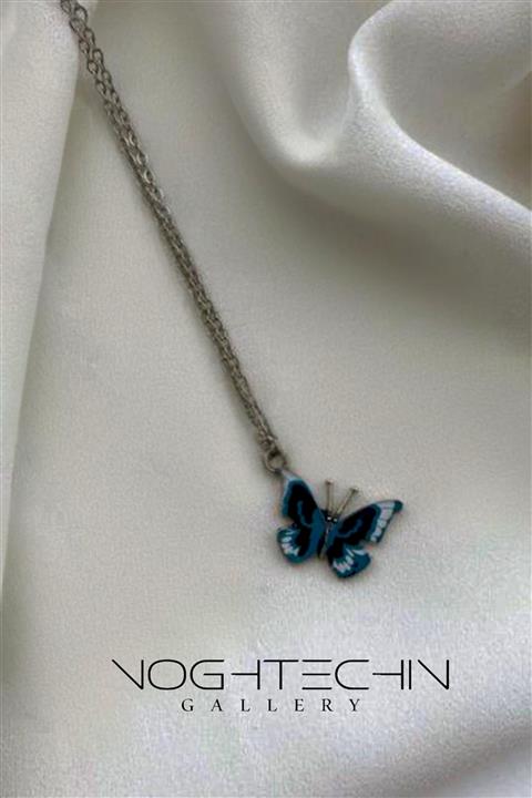 گردنبند زنانه برند فشن مدل پروانه ی طرحدار طوسی با کیفیت بالا