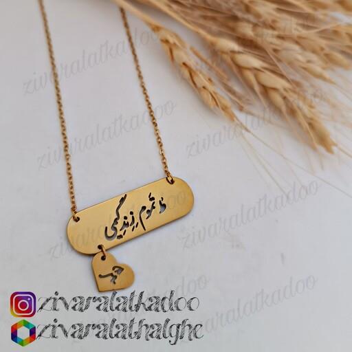 گردنبند شعر استیل با آویز قلب و حروف دلخواه شما در دو رنگ