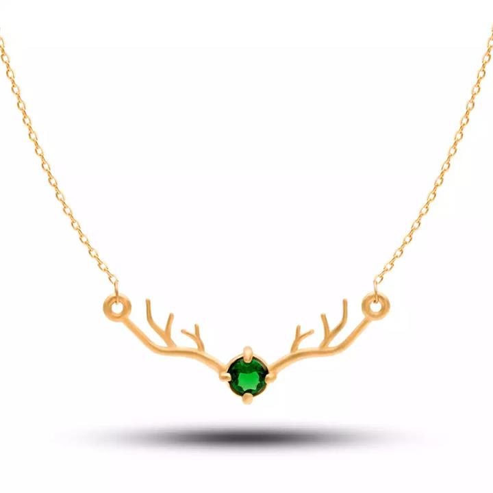 گردنبند طلا گوزن با سنگ زمرد طرح جدید GNH0554