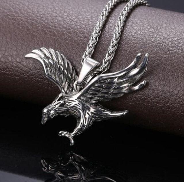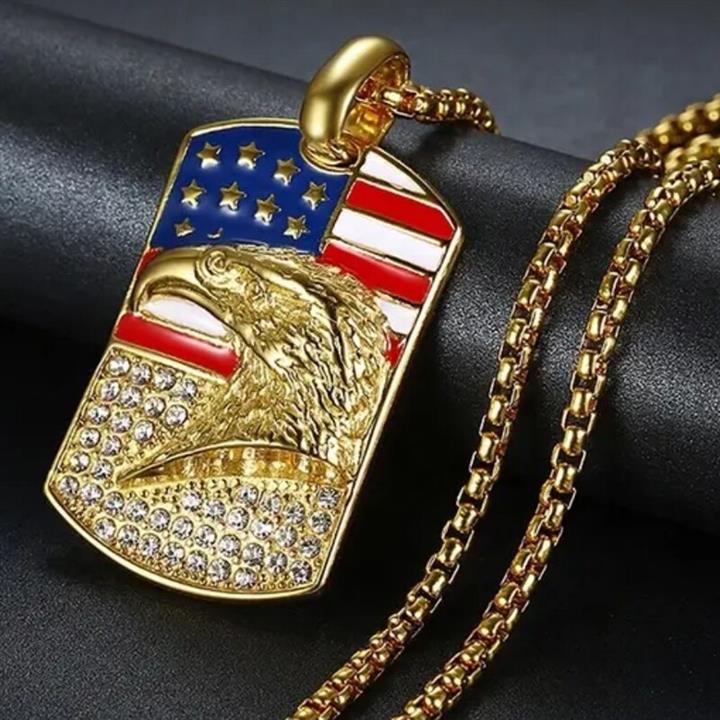 گردنبند مردانه عقاب با ورق طلا و سنگ سری ایستا