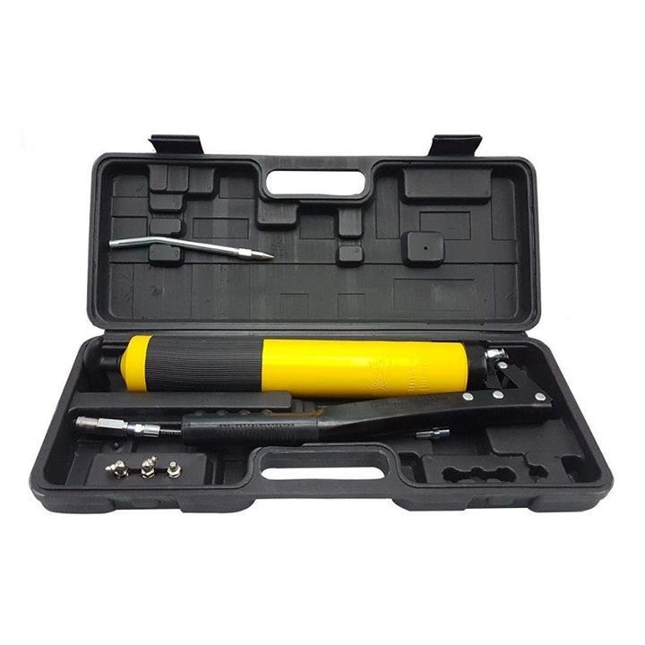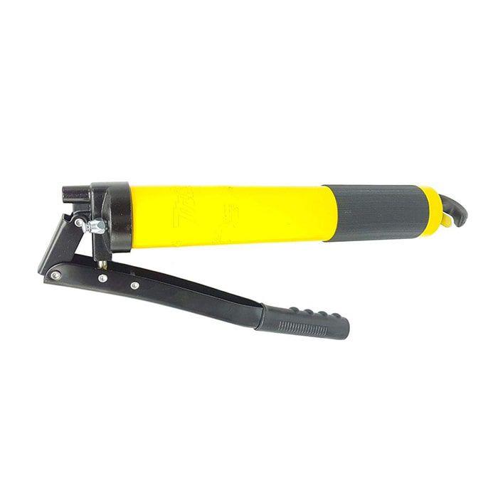این گریس پمپ دارای یک کیف پلاستیک محکم سه عدد گریس خور راست ، کج و نیمه کج یک عدد شلنگ برای راحتی کار دارای لاستیک روی بدنه دارای دو سوپاپ قدرت 12000 psi