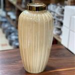گلدان فلزی پایه دار کرمی با لبه طلایی
