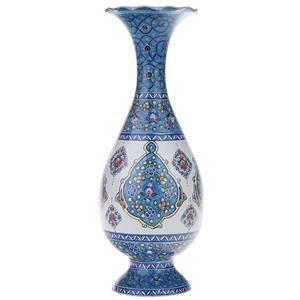 مشخصات فنی گلدان مسی میناکاری شده اثر اسماعیلی طرح ترنج ارتفاع 20 سانتی متر