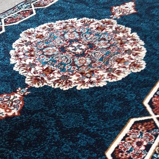گلیم فرش پرزبلند 6متری زمینه سرمه ای کاشان