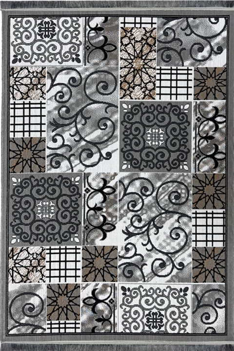 گلیم ماشینی جزیره طرح ساوین زمینه طوسی (غیربرجسته)