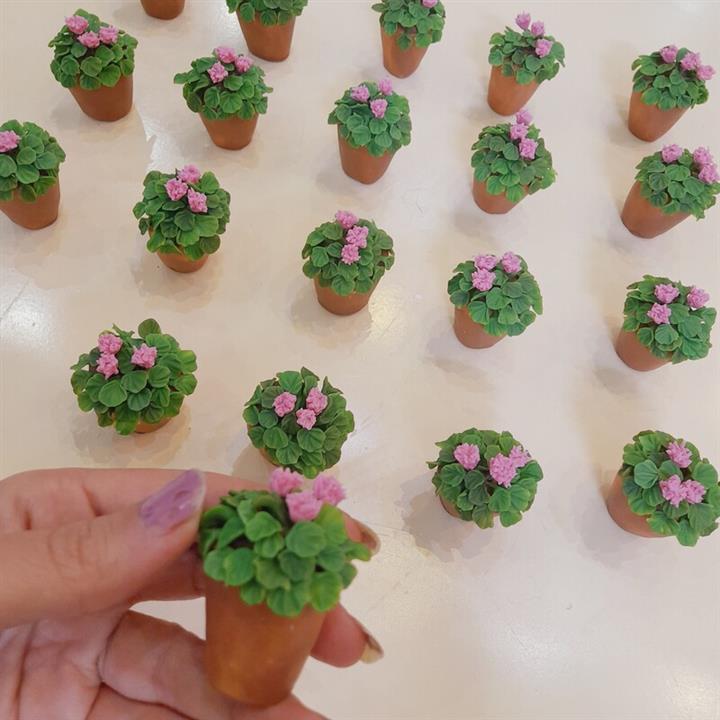 گل شمعدانی صورتی مینیاتوری خمیری ( ماکت ) مناسب برای تزیین ماکت خانه و حیاط و ...