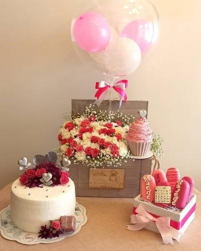 گل و کیک و عروسک بادکنک تبریک نوزاد دختر