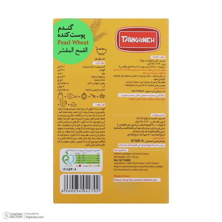 مشخصات فنی گندم پوست کنده 250 گرمی ترخینه