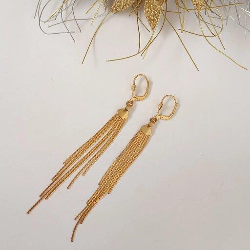 گوشواره دو سوراخه آویز دار زنجیری بلند اسپرت