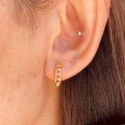 گوشواره حلقه ای ژوپینگ مدل زنجیری نگین دار کد B1307