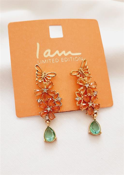 گوشواره آویز کوتاه پروانه و گل نگینی - چند رنگ