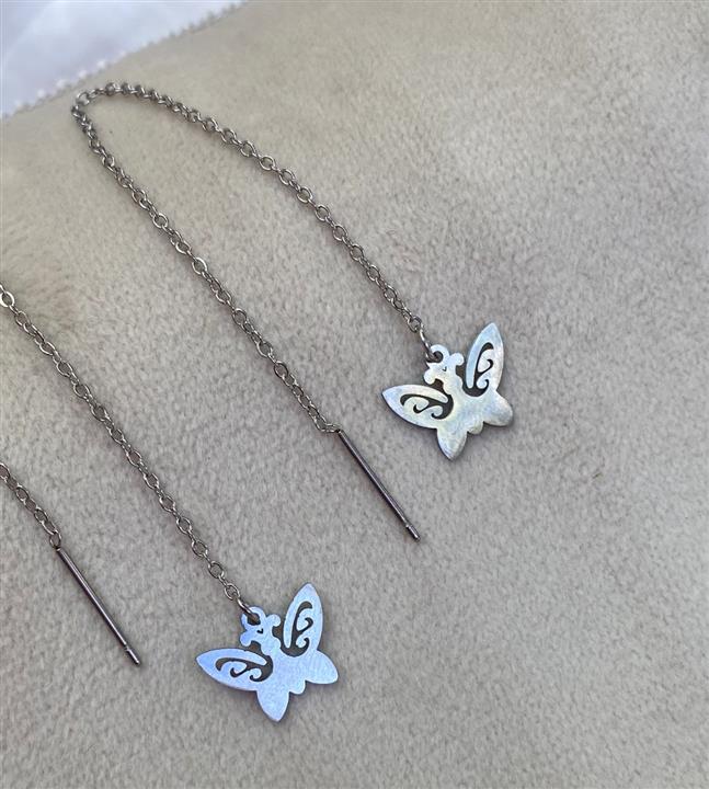گوشواره زنانه بخیه ای مدل پروانه استیل رنگ ثابت