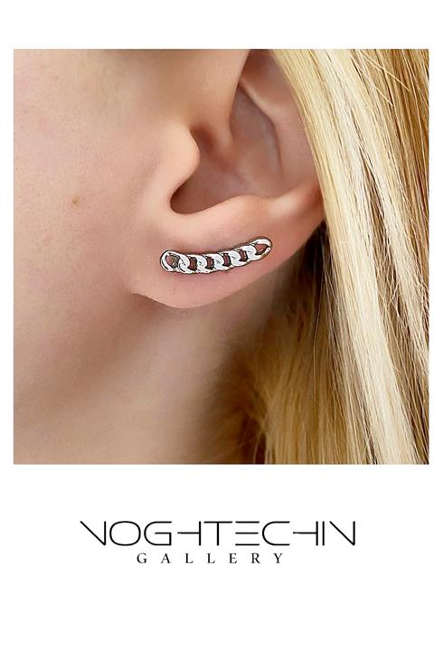گوشواره زنانه برند استنلس استیل مدل کارتیه نقره ای وارداتی