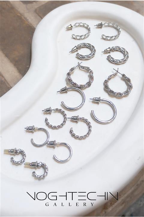 گوشواره زنانه برند وای اس ایکس مدل حلقه ای طرحدار وساده سیلور وارداتی