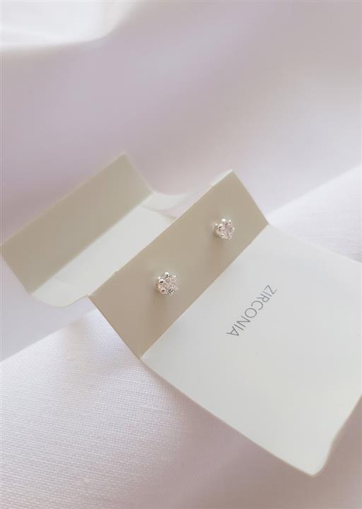 گوشواره زنانه نقره نگین زیرکنیا کد2 سفید