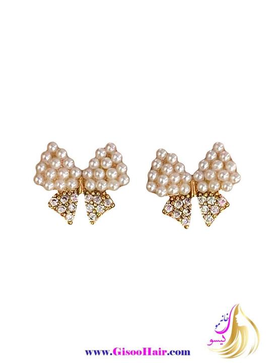 گوشواره میخی زنانه ژوپینگ مدل پاپیون مرواریدی کد 2001