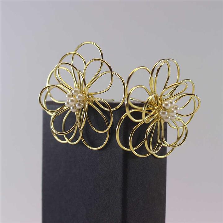 گوشواره میخی طرح گل طلایی زنانه کد 3001