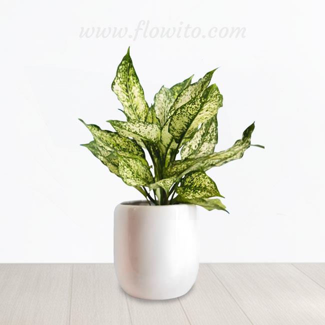 گیاه طبیعی آگلونما برفی کد 301 به همراه گلدان