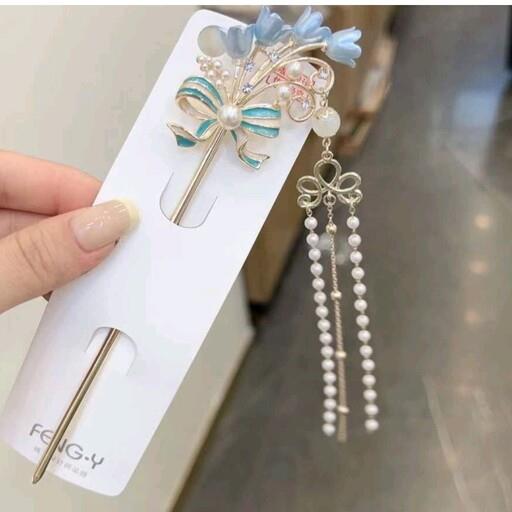 گیره مو زنانه مدل کانزاشی ژاپنی دوبل مروارید دار کد 4086