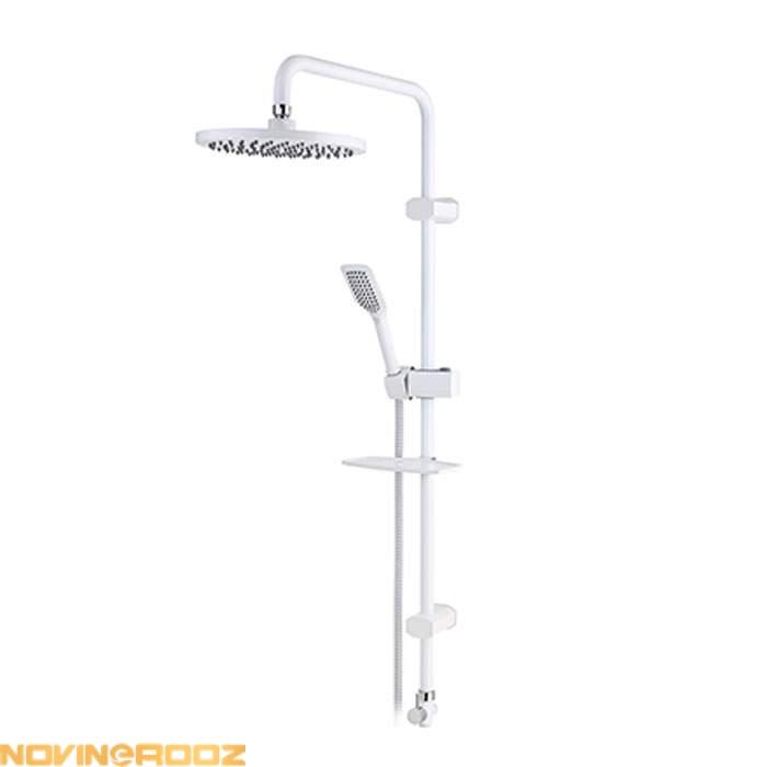 علم دوش حمام پلاستیک سفید سردوش 15.15 سانت بازشو میراب مدل اویار