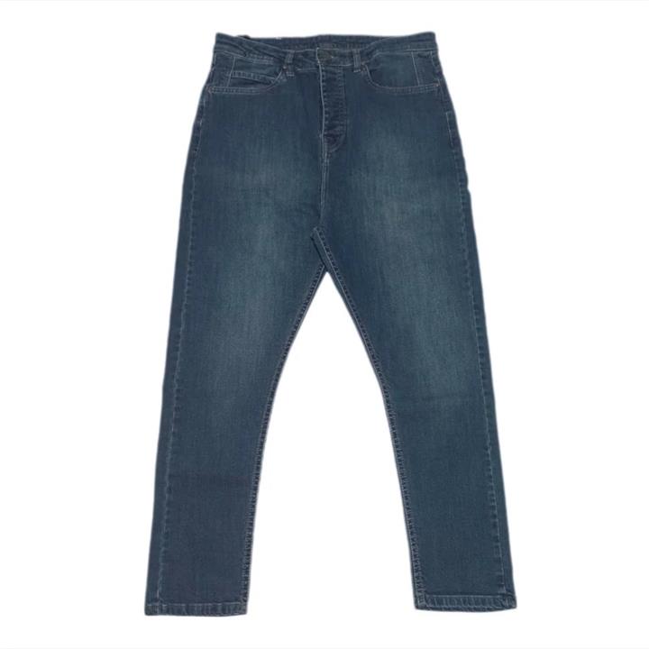 شلوار جین مردانه مدل بالونی کمرکش سرمه ای تینت کرم