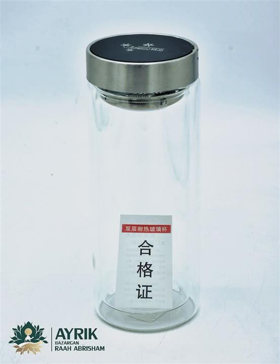 🍵✨ ماگ دمنوش دو جداره پیرکس صافیدار | لیوان شیشهای دمنوش...