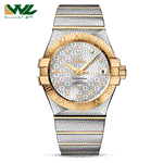 ساعت امگا کانسلیشن مردانه دورنگ طلایی صفحه سفید صدفی ایندکس نگین Omega-5158-G