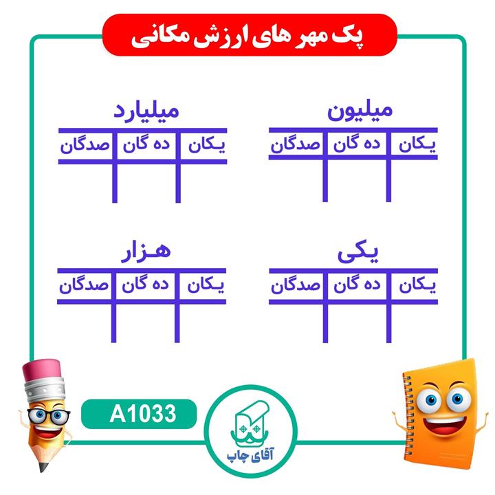 4 عدد مهر آموزشی جدول ارزش مکانی - ریاضی کد A1033