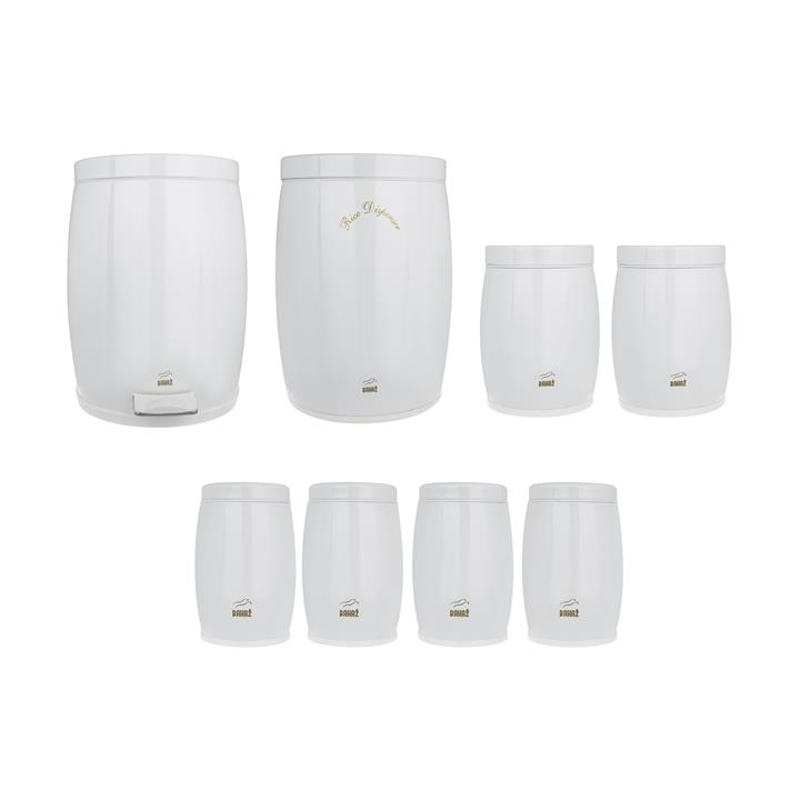 - دارای ظرف برنج با ابعاد: 41 × 30 × 30 سانتیمتر و وزن: 2585 گرم - دارای سطل زباله پدالی با ابعاد: 40.5 × 30 × 35 سانتیمتر و وزن: 2860 گرم - دارای 4 عدد بانکه سایز 1 با ابعاد: 19.5 × 13 × 13 سانتیمتر و وزن: 235 گرم - دارای 2 عدد بانکه سایز 2 با ابعاد:24.5 × 18 × 18 سانتیمتر و وزن: 715 گرم