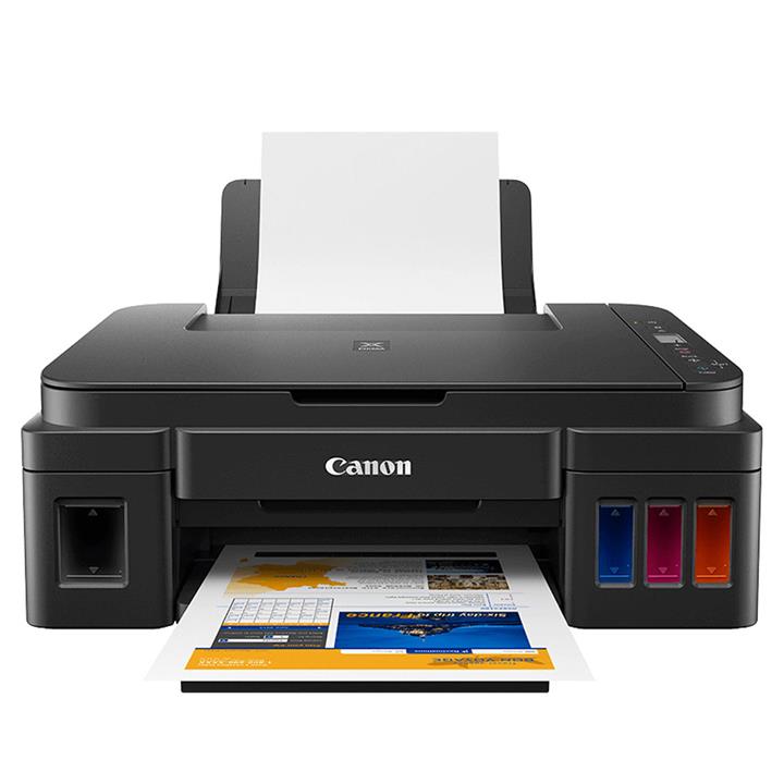 دستگاه G3410 ، کابل برق ، درایور و نرم افزارهای دستگاه ، دفترچه راهنما ، یک سری جوهرهای اصلی کانن (مشکی ، آبی ، قرمز ، زرد )