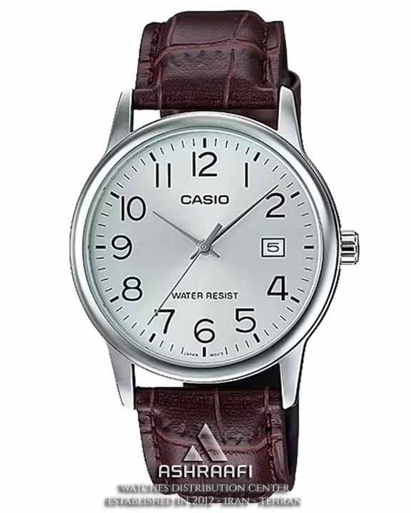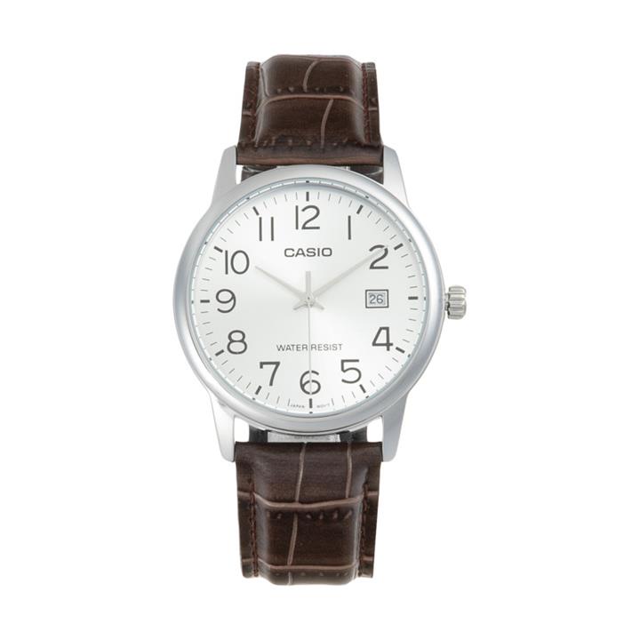 ساعت کاسیو مردانه چرم قهوه ای قاب نقره ای MTP-V002L-7B2UDF
