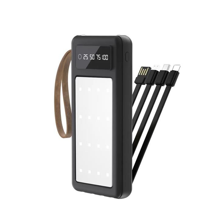 درگاه شارژ Type-c - دارای دو درگاه خروجی USB - کابل خروجی لایتنینگ - کابل خروجی Type-c - کابل خروجی Micro USB - کابل ورودی USB