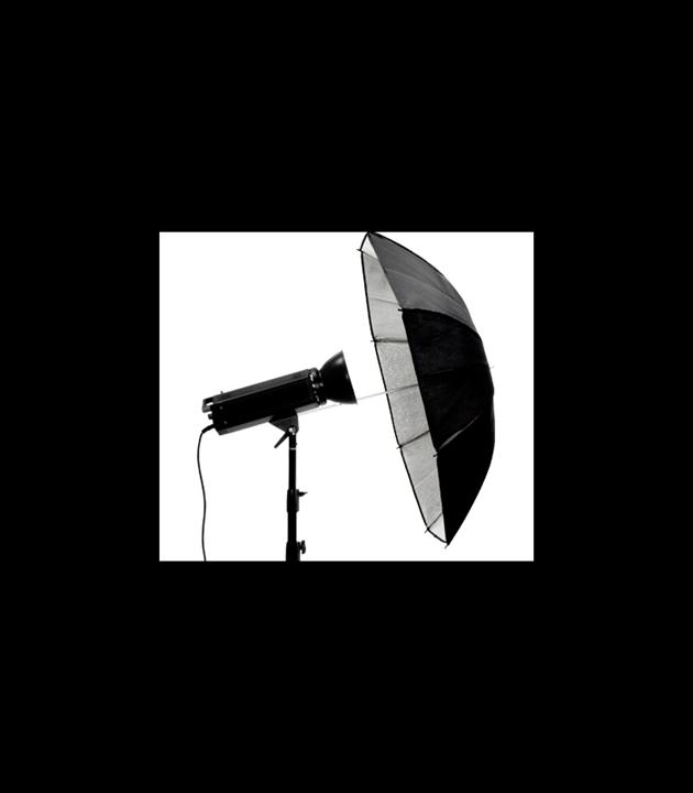 این چتر دارای سطح بازتابی نقرهای در داخل و سطح مشکی در خارج است. این وسیله میتواند نور فلاش استودیویی را با طیف سرد بازتاب کند.