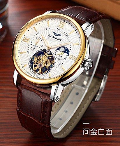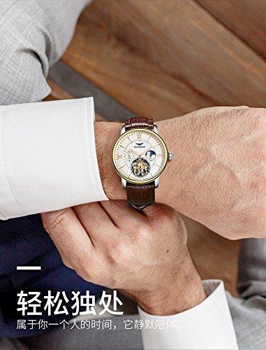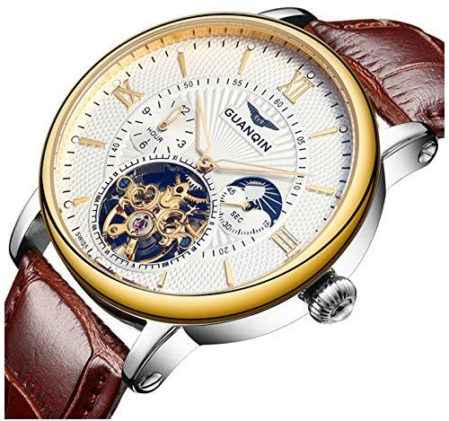 Fanmis Brown Leather Strap Men Tourbillon Luminous Automatic Watch Skeleton Moon Phase Waterproof White