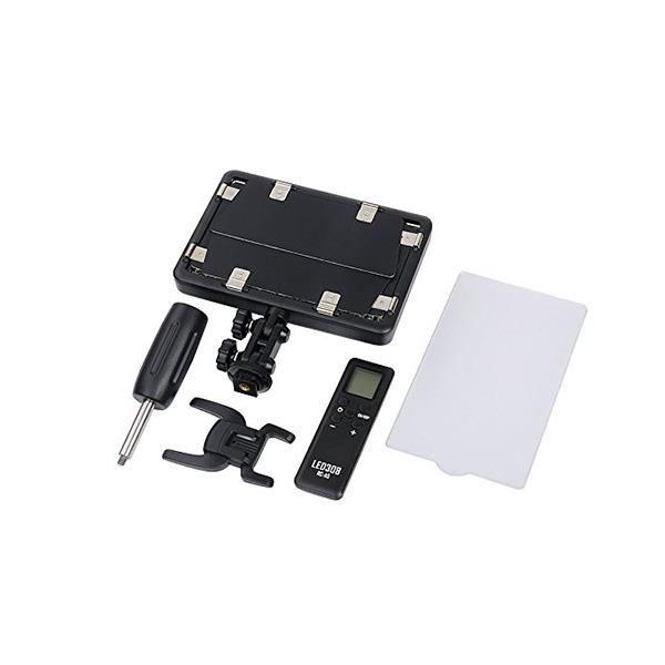 پنل LED همراه با مانت اتصال به هات شو دوربین / 1 عدد فیلتر سفید / باتری / شارژر / گریپ دستی / یک عدد پایه نگه دارنده