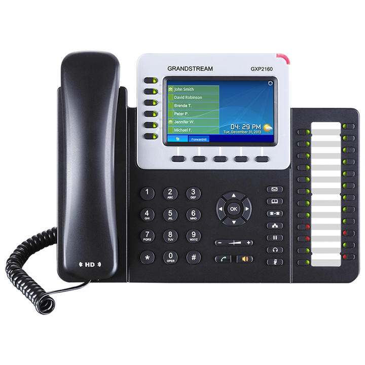 6line keys with up to 6 SIP accounts, 24 speed-dial/BLF extension keys with dual-color LED, 5 programmable context sensitive softkeys, 5 navigation/menu keys, 11 dedicated function keys for : MESSAGE (with LED indicator), PHONE-BOOK, TRANSFER, CONFERENCE, HOLD, HEADSET, MUTE, SEND/REDIAL, SPEA-KERPHONE, VOL+, VOL-