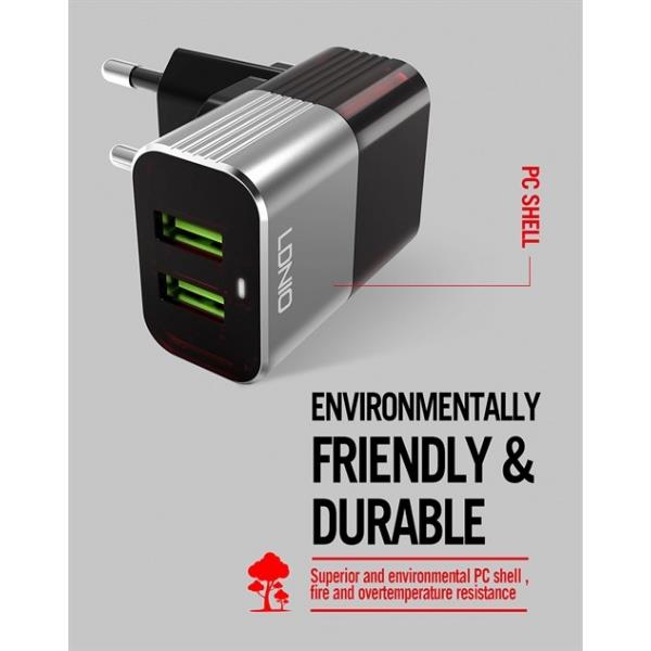 LDNIO A2206 DUAL USB CHARGER WITH MicroUSB CABLE