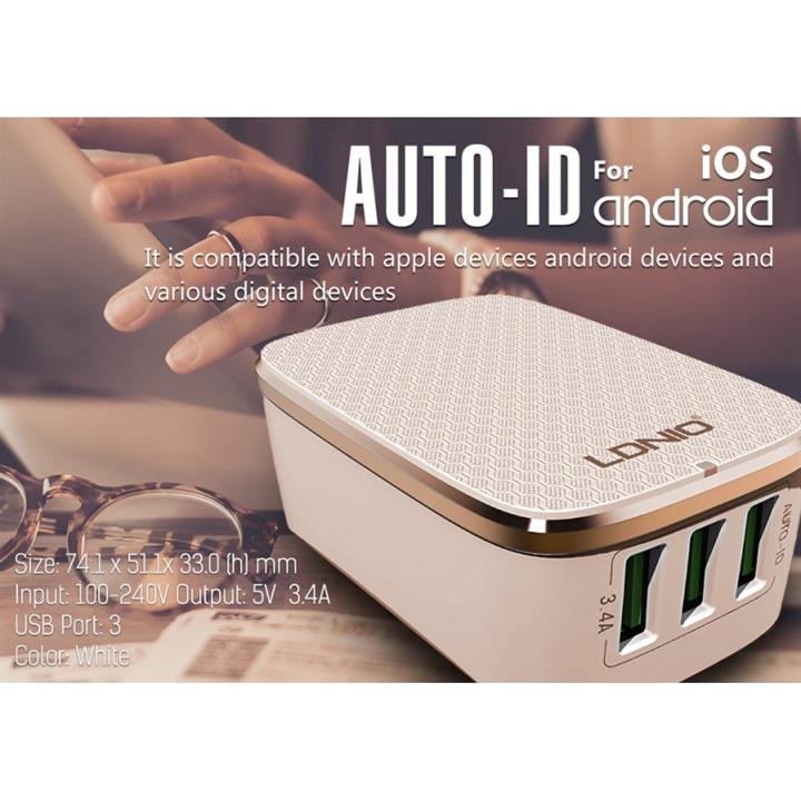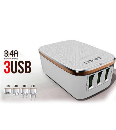 شارژر سه پورت LDNIO A3304 USB Travel Charger