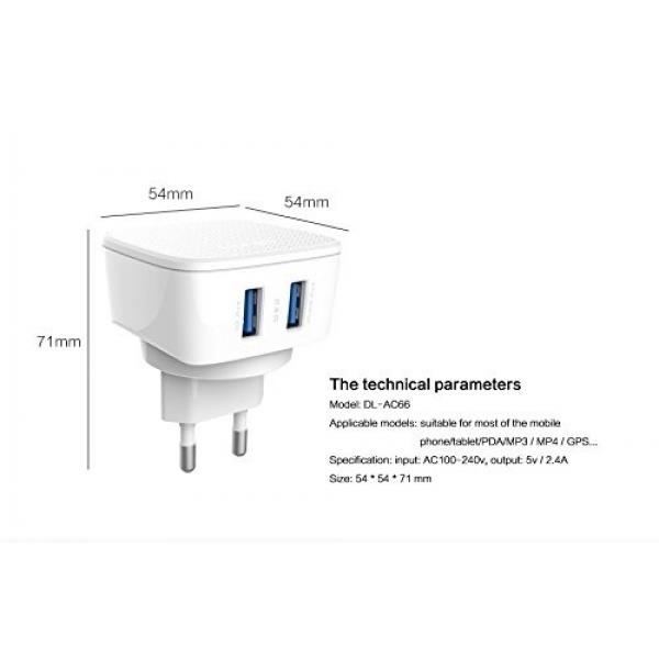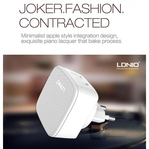 مشخصات فنی شارژر دیواری الدینیو مدل DL-AC66 به همراه کابل لایتنینگ