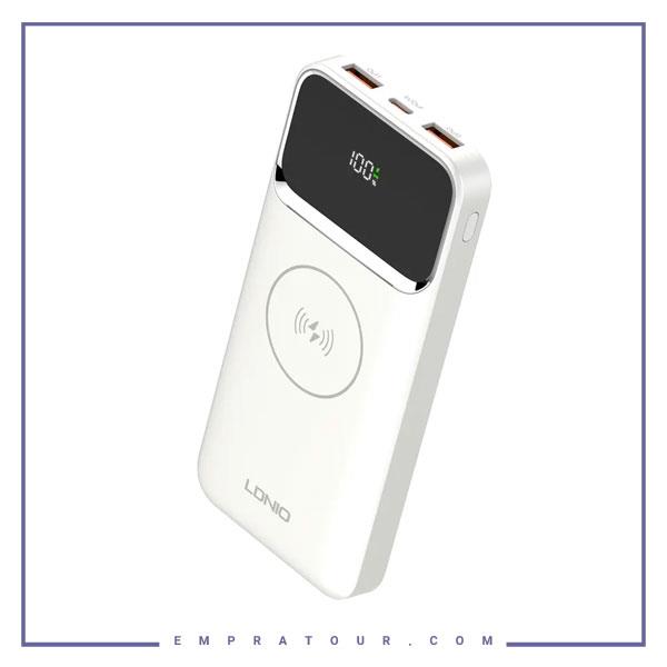 تکنولوژی فست شارژ PD و QC | شارژ وایرلس مگنتی 15 واتی | دارای 3 پورت خروجیشارژ وایرلس | توان خروجی کلی 22.5 وات | دارای نمایشگر LED برای درصد باتری